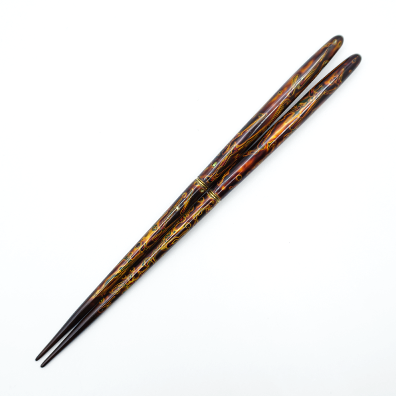 漆を何層にも塗り重ね、丹念に磨き上げたお箸は芸術品とも言える美しい仕上がり。